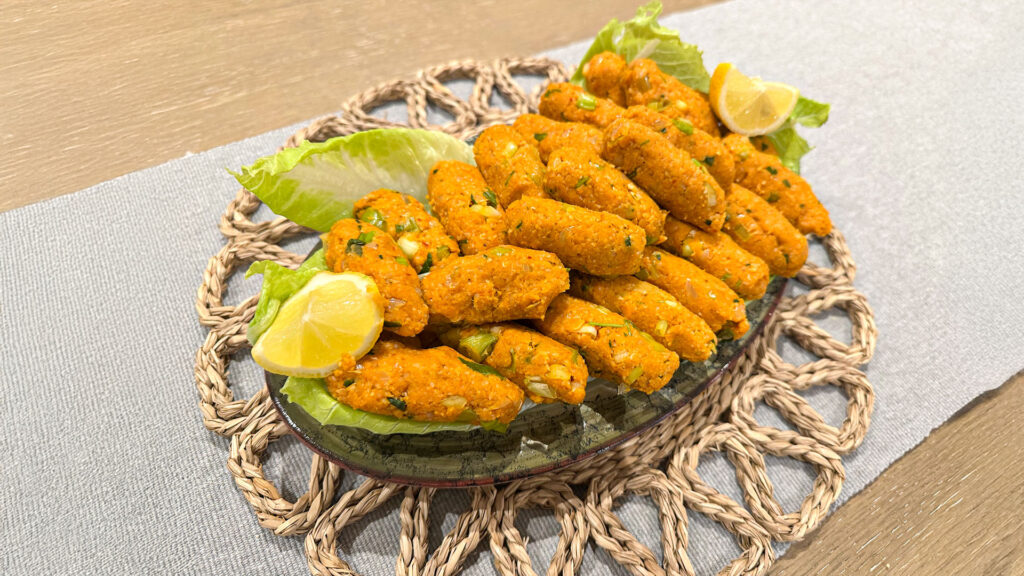 Traditional Turkish red lentil balls made with red lentils, bulgur, fresh herbs, lemon juice and pomegranate molasses. A flavourful vegan meze classic.