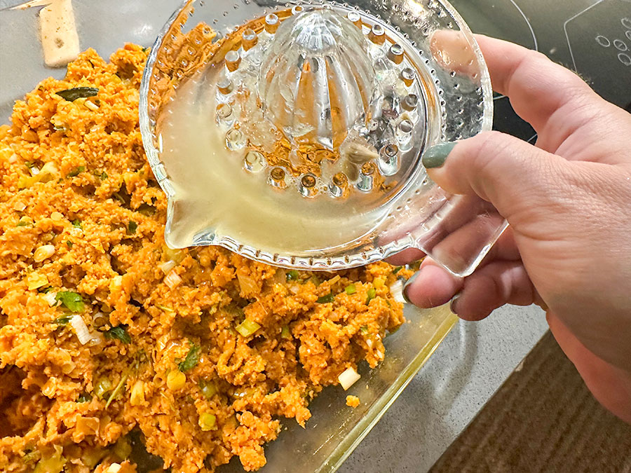 Traditionally, red lentil balls are served on crisp lettuce or rocket leaves and finished with a final squeeze of fresh lemon juice just before serving.